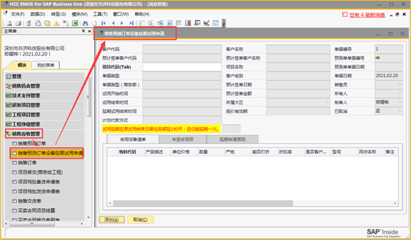 销售预测订单设备延期试用申请操作手册