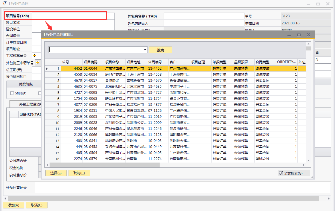 如何查询ERP系统中项目是否报备