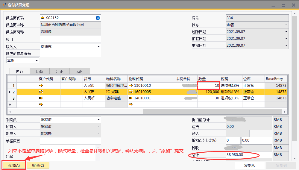 应付贷项凭证操作手册