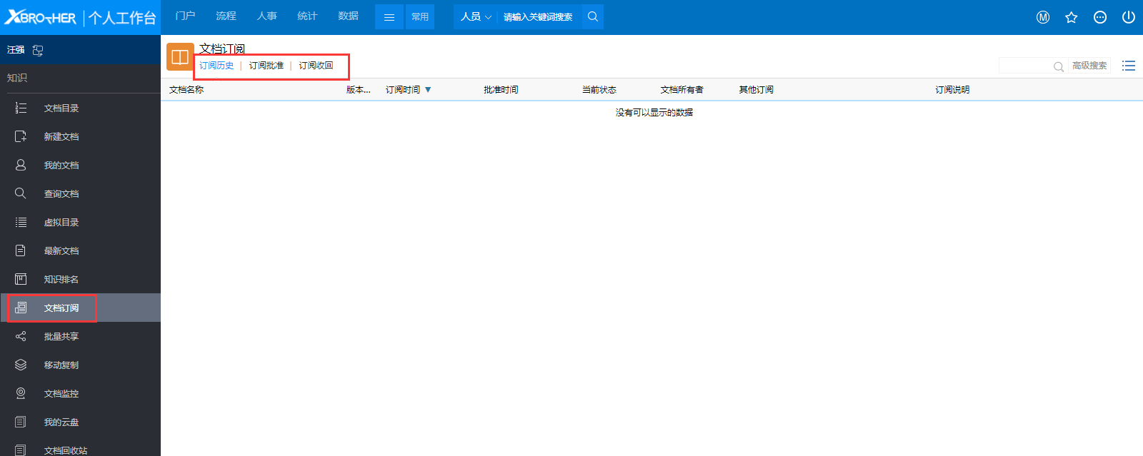 # 一、概述 系统中的文档是需要共享之后才能看的,那么必定有一部分文档是没有查看权限的,这个时候我怎么才能知道系统中是否有我需要的文档呢,尤其是经验类的,我们就需要在目录中开启一个订阅功能了。 开启订阅功能之后,用户在搜索文档标题的时候,即使没有查看权限的文档也可以被搜索到,搜索到之后查询的用户觉得对自己有用,可以通过订阅功能向文档的所有者申请查看,所有者审批之后订阅人就可以查看文档了,审批的人随时可以取消这个订阅权限,取消后,申请人又不能查看了。整个步骤有些类似图书馆借书。 # 二、文档订阅操作 文档订阅有两个角色存在,一个是订阅的人,一个是文档所有者,这里每个人都是作者,同时每个人都是读者,所以在订阅管理中两种角色都可能存在,如图1所示。  图1 1、订阅历史是你做为读者向别人申请订阅的记录,可订阅的文档只能从查询文档中展现,所以申请订阅的操作在那里执行,这里只展示订阅的历史记录 2、订阅批准和订阅收回是你做为作者审批别人订阅申请的记录,订阅批准是审批别人的订阅申请,只有你在这里批准了别人才能看,订阅收回是你将已经批准的订阅收回,收回后订阅人就不能查看这篇文档了。如果要长期向他分享文档,还是通过共享的方式比较好。